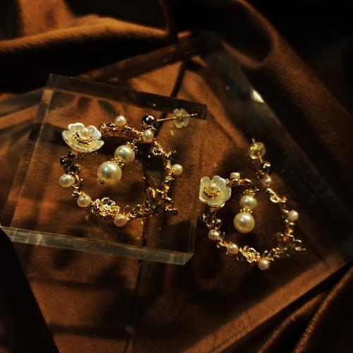 Pearl garden earrings - 珍珠花圈耳環